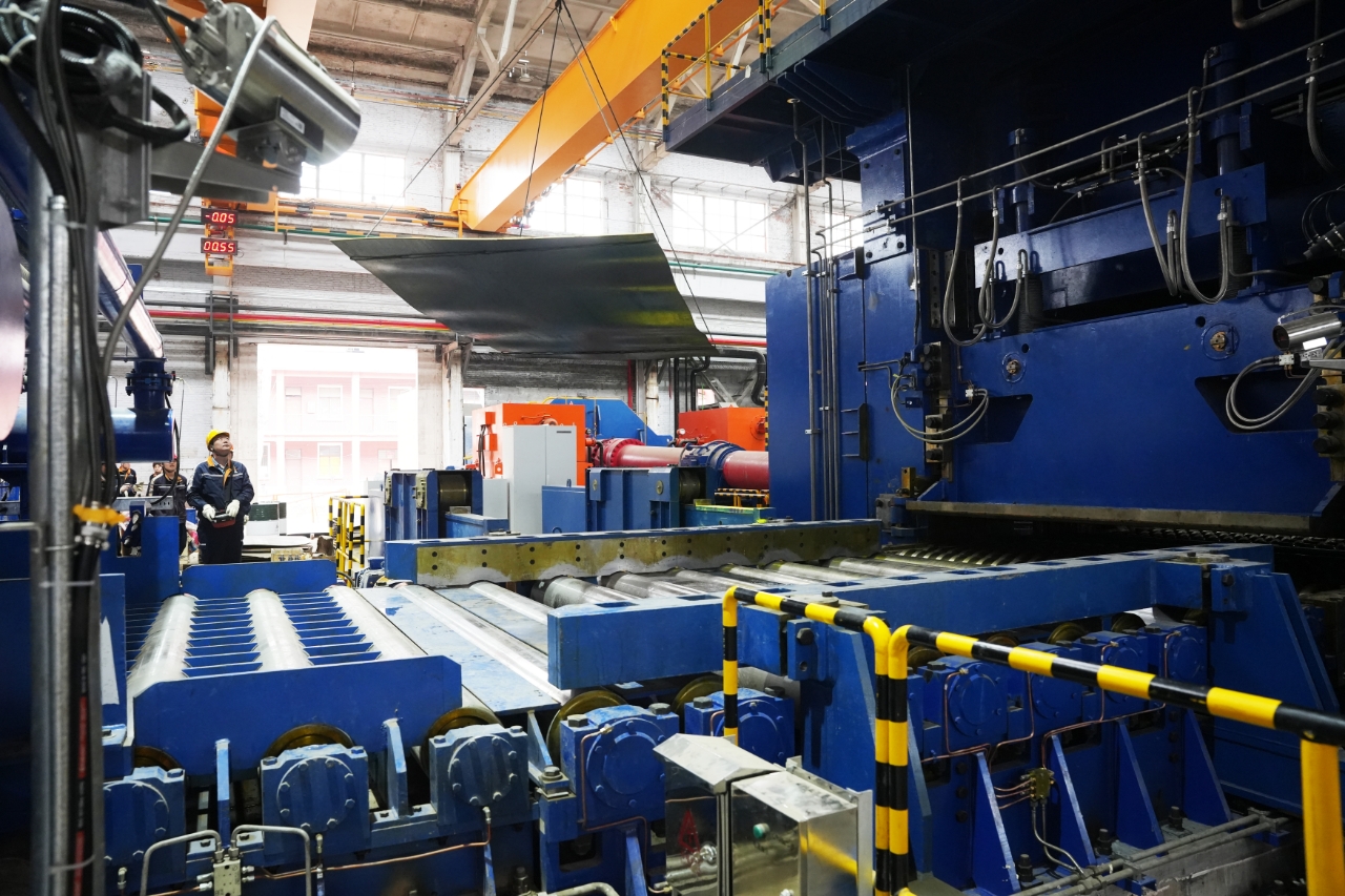 此次试轧的3500mm宽厚板轧机,是高端铜材深加工核心装备,兼具冷热轧一体化功能。设备搭载智能轧制控制系统、正负弯辊控制技术,同步配套行业先进的雪橇轧制控制工艺,可实现辊缝间隙微米级精准调节、轧制压力全程实时把控,兼顾板形规整控制与板材翘扣头防控,针对性破解大宽幅铜板材轧制过程中易出现的厚度不均、板形波动等行业共性痛点,为高效稳定、一次合格轧制提供了硬核硬件与工艺双重保障。